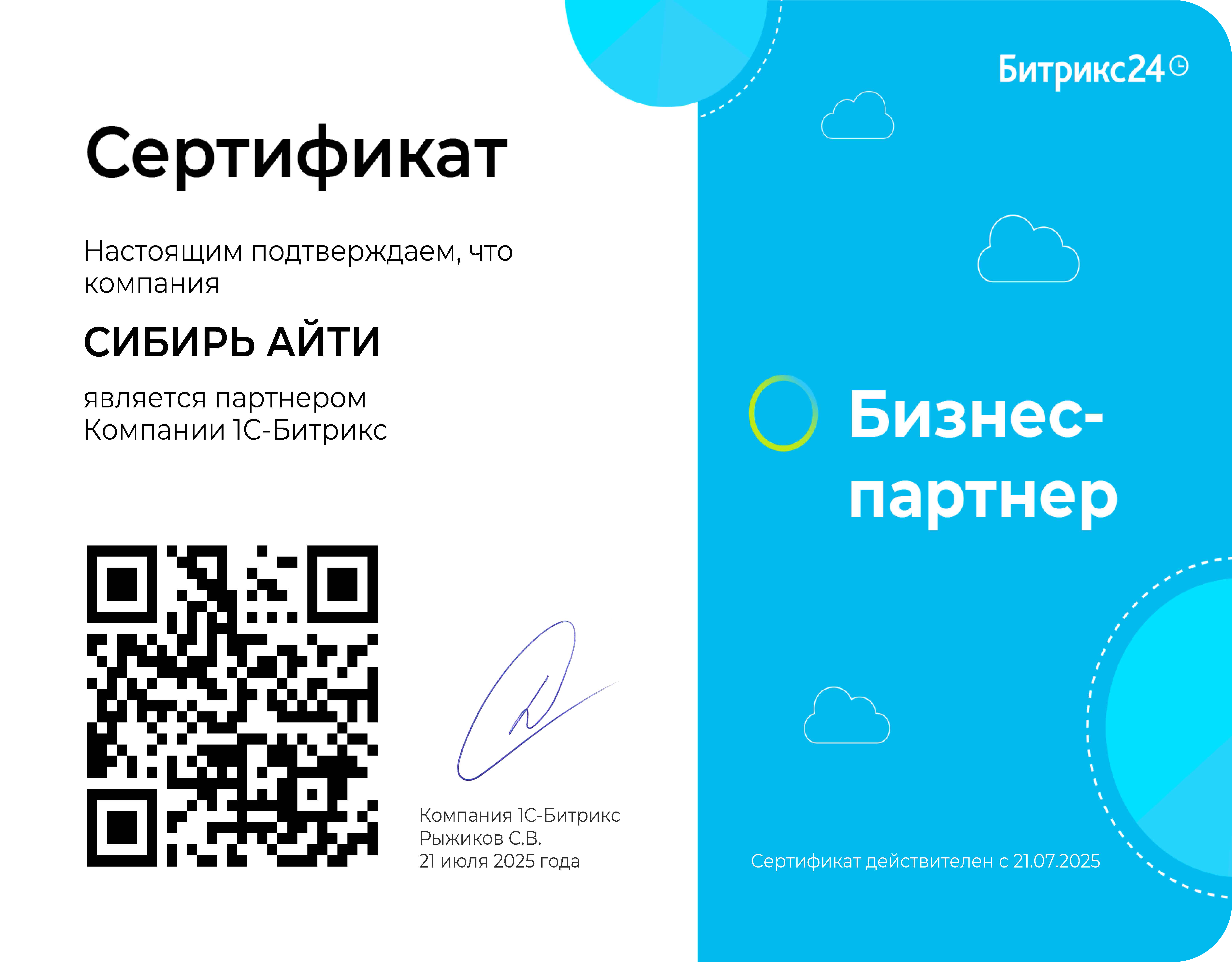 Мы Сибирь Айти являемся официальным "Бизнес-партнером" Битрикс24. Всего около 15 млн компаний уже используют Битрикс24, и ежегодно этот список пополняется.